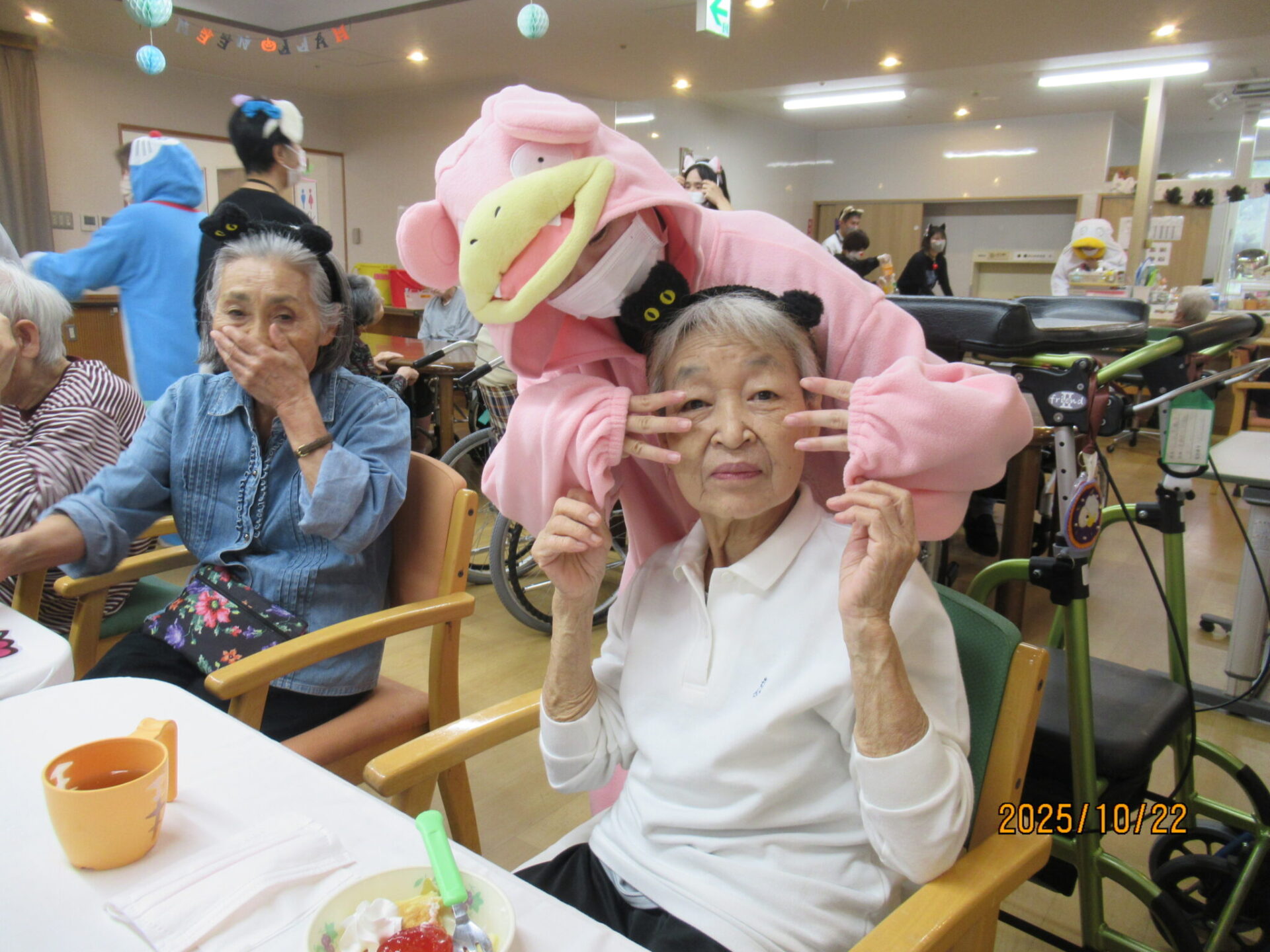 ケアハウスから1階にある小松原デイサービスに12名、また
