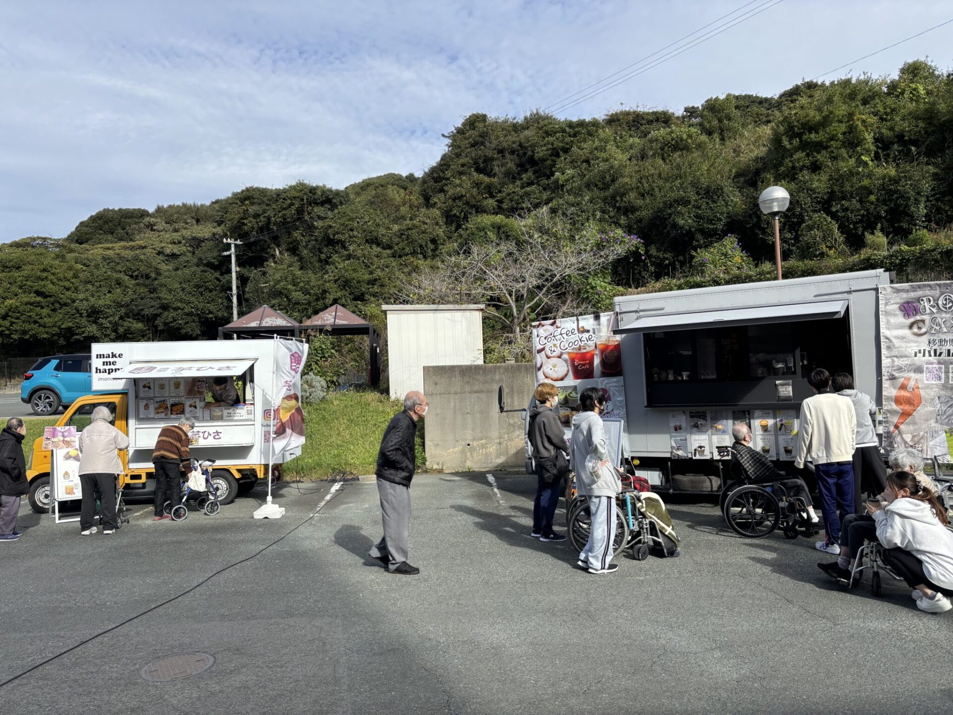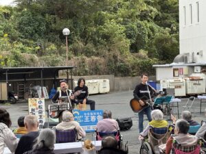 キッチンカーで購入された物をステージを見ながら召し上がっていました。曇り空で寒かったですが、皆様楽し前れた様子です(^_-)-☆