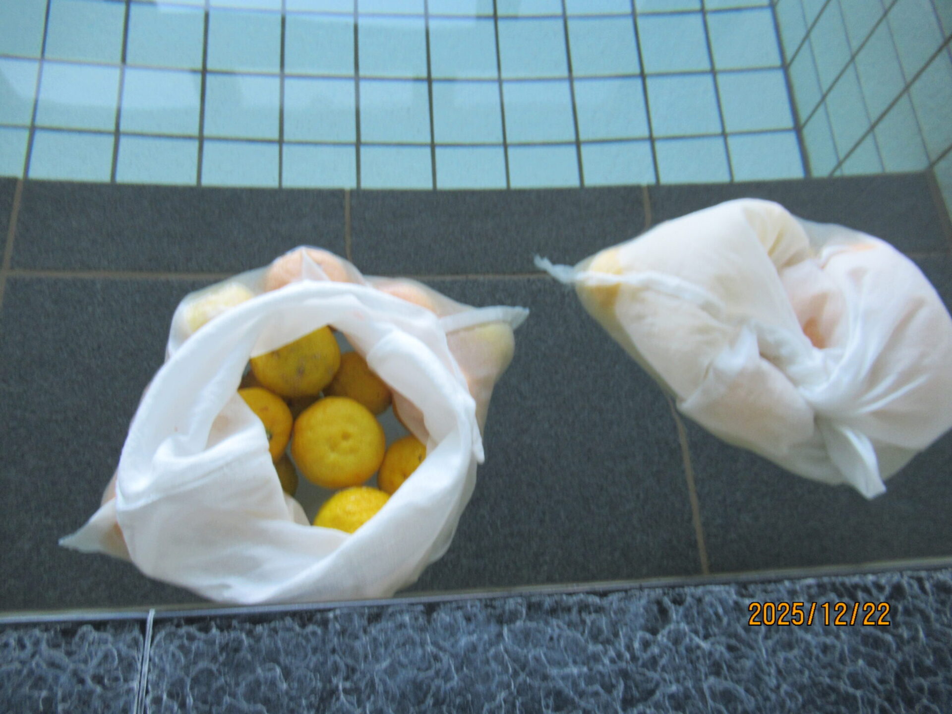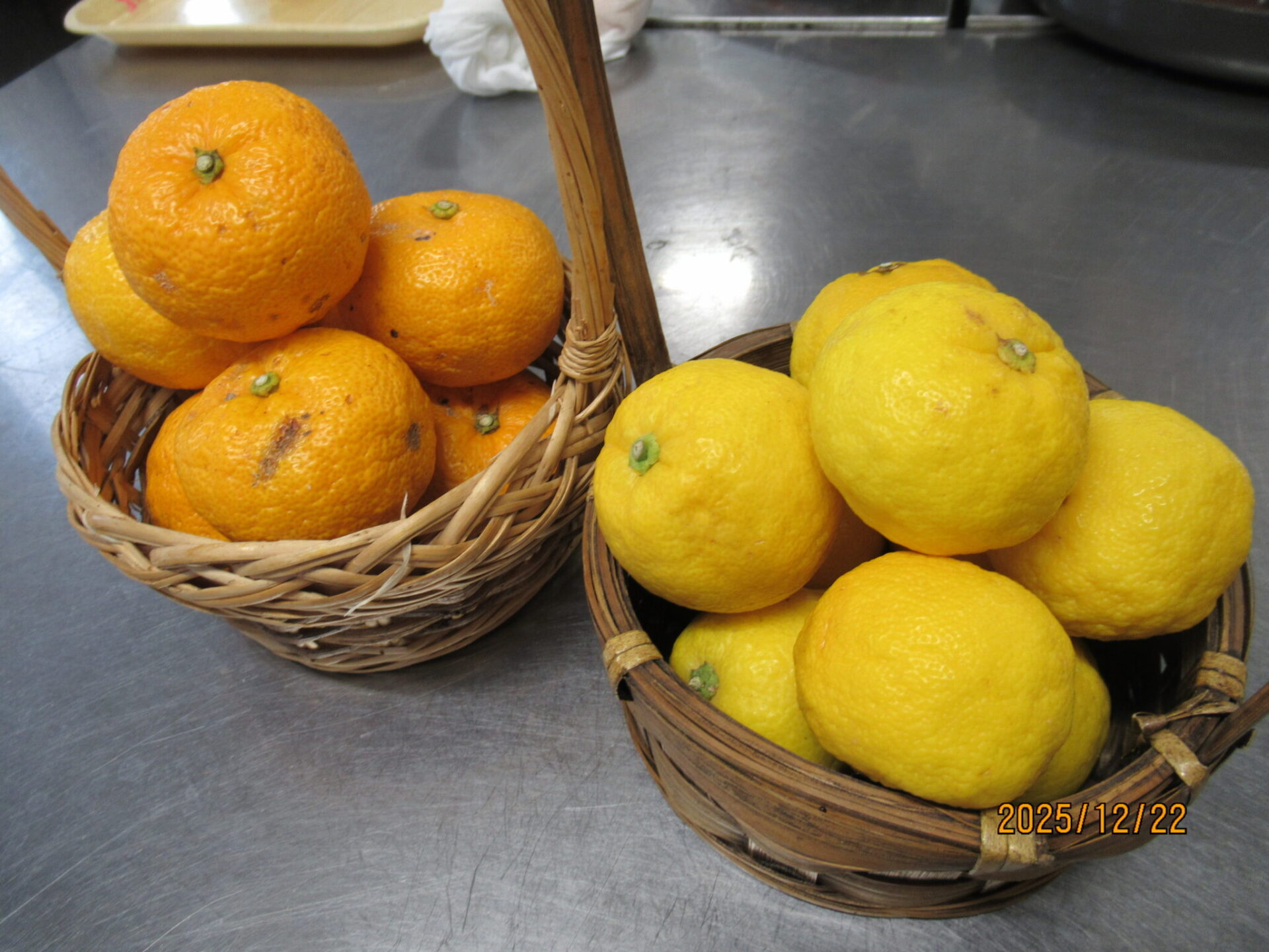 今日は冬至です。ケアハウスのお風呂はゆず湯、お風呂の中がゆずの香りでいい匂いです。