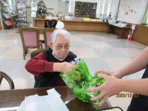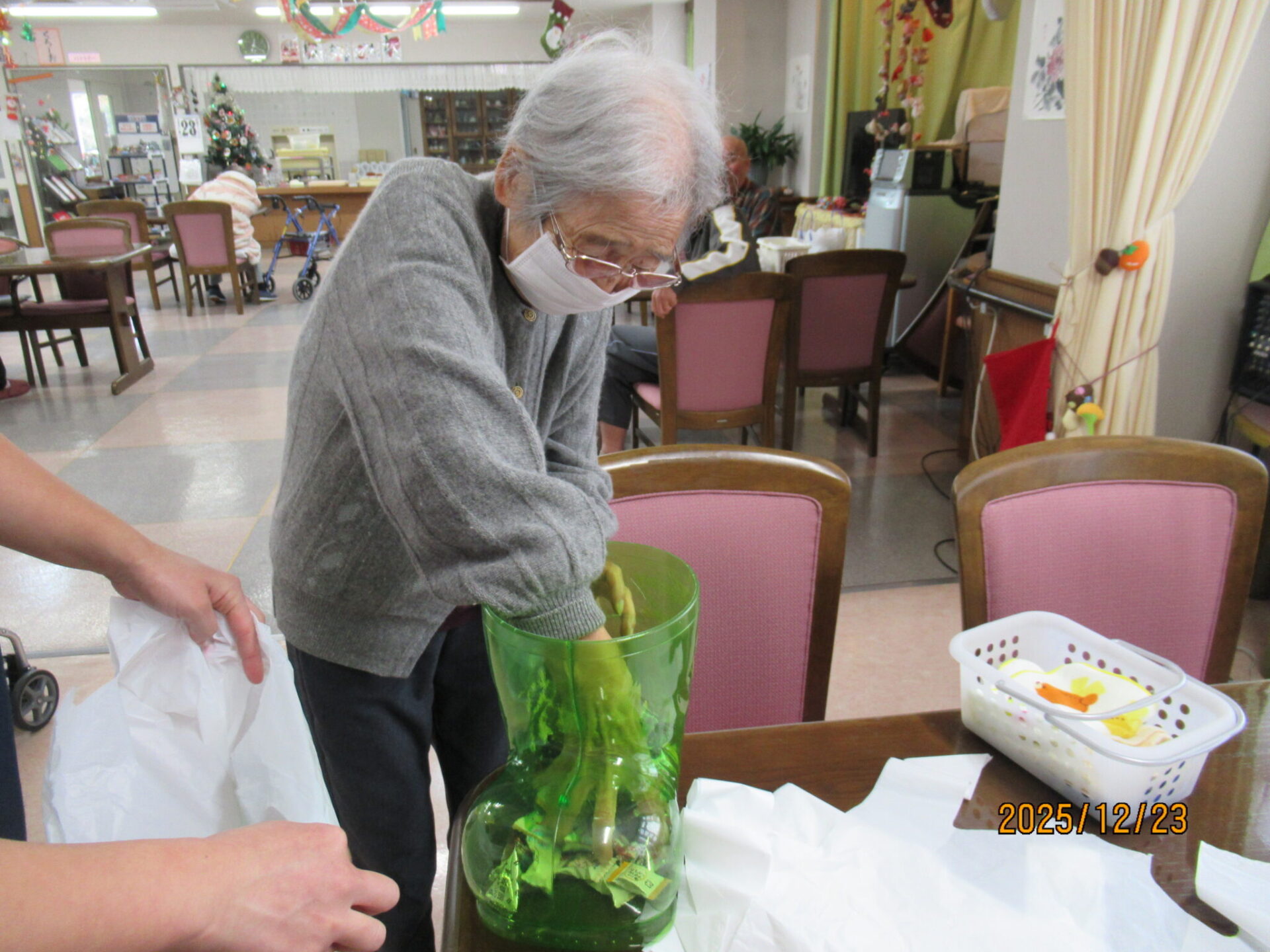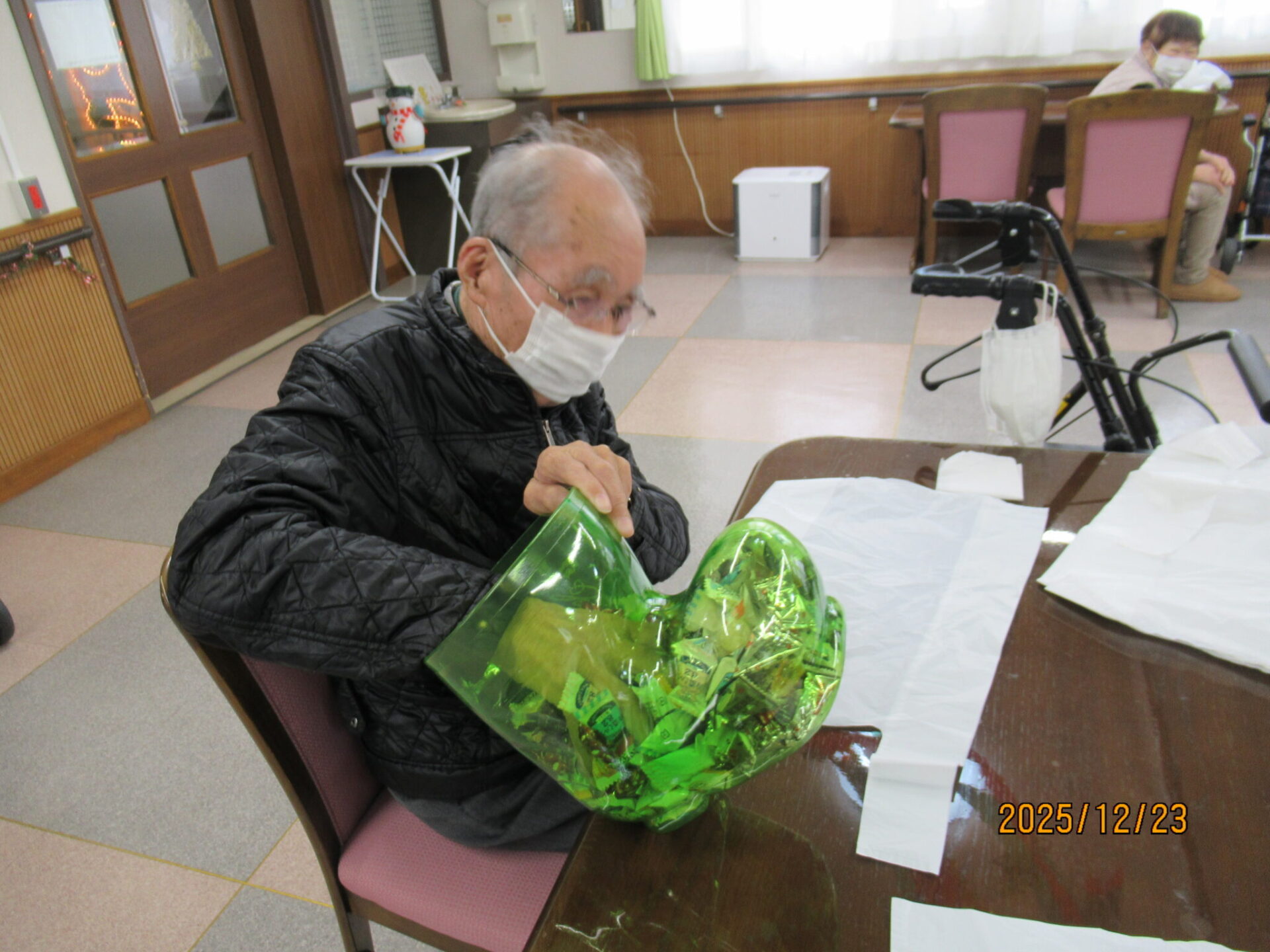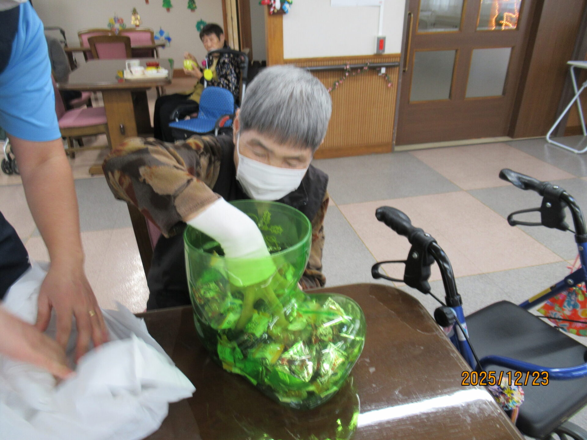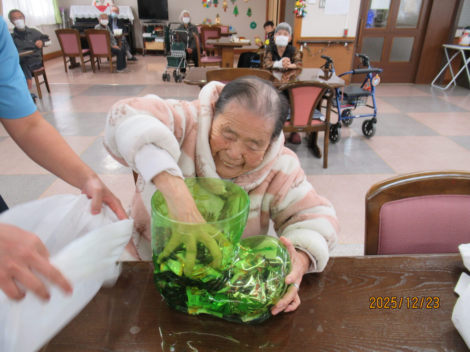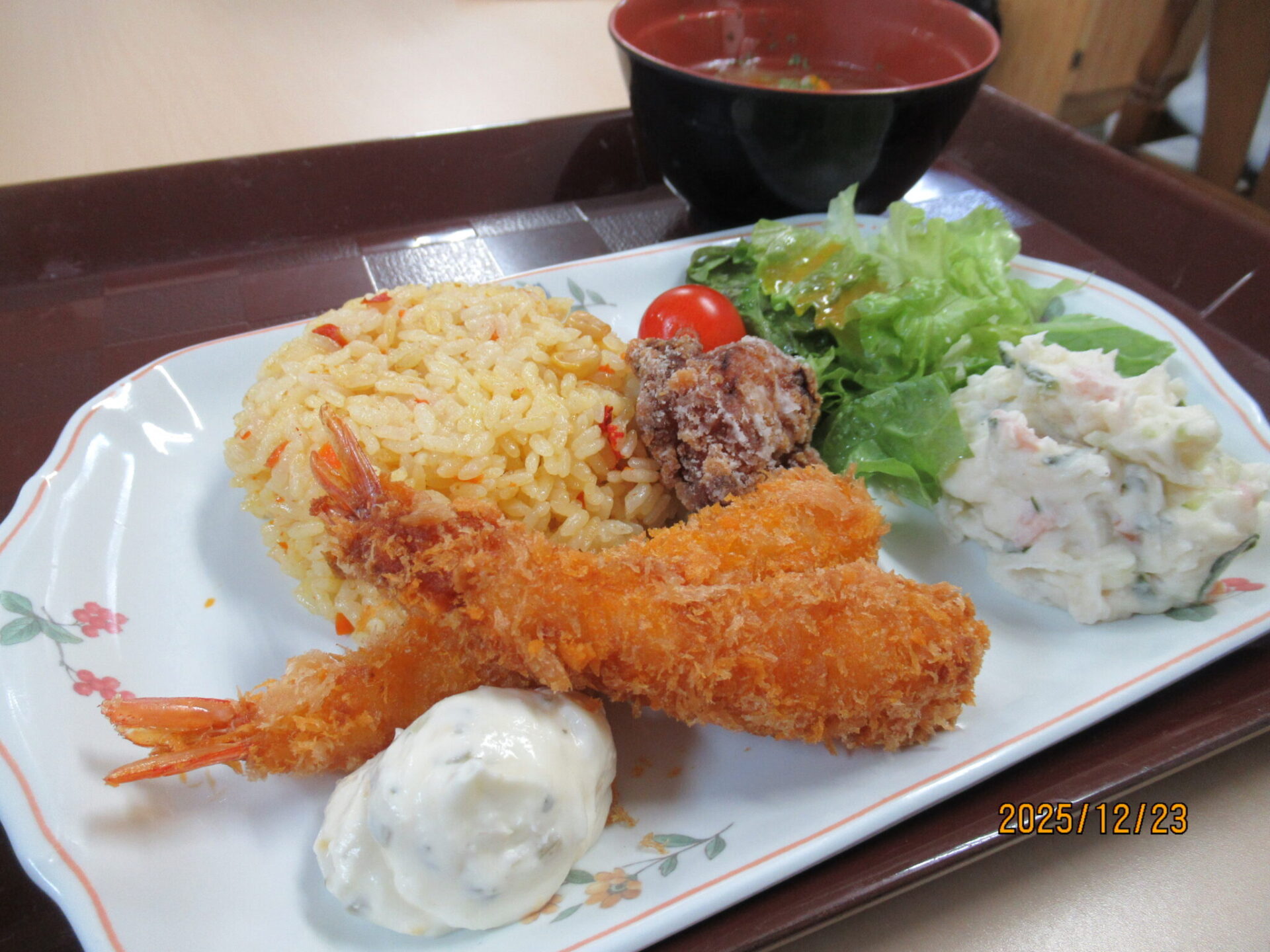 今日は一足早いクリスマス行事食でした🎄 エビフライ、から揚げ、ピラフが昼食で提供されました!! 皆さん美味しいと喜ばれていました💛 くろしおサンタからは飴のつかみ取りのプレゼントがありました🍬🎅 エントリーする