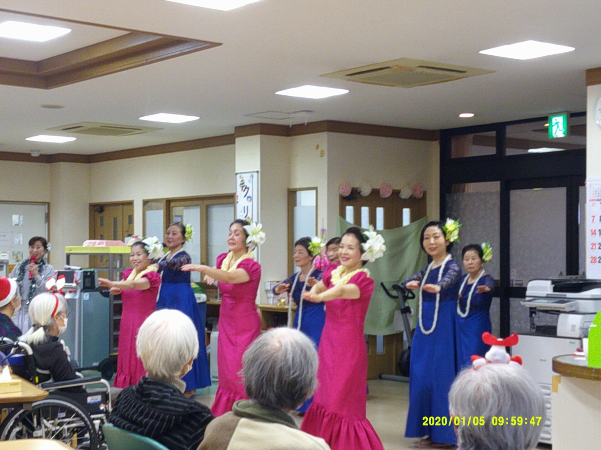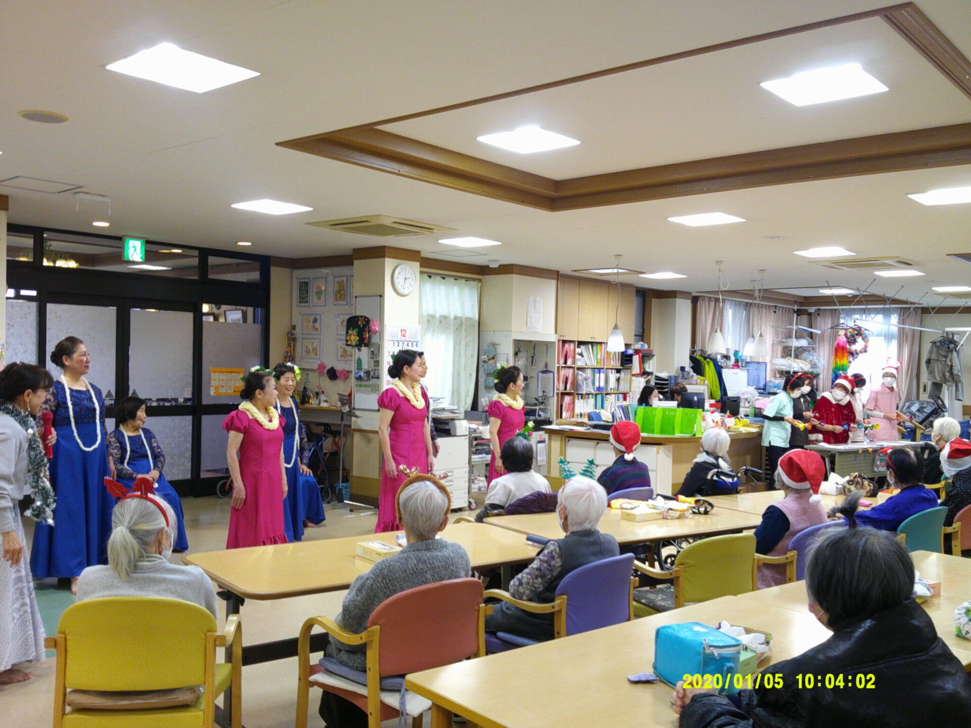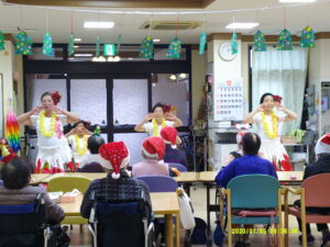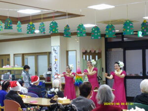 クリスマス会に「ハーラウ フラ オ カ レイナニ」の皆さんが素敵な笑顔でフラダンスを披露してくださいました。寒い冬にとっても暖かい気持ちにさせてくださいました。