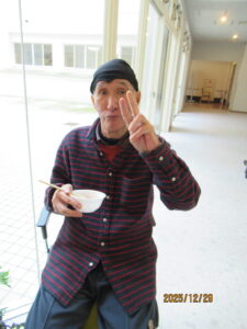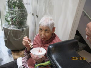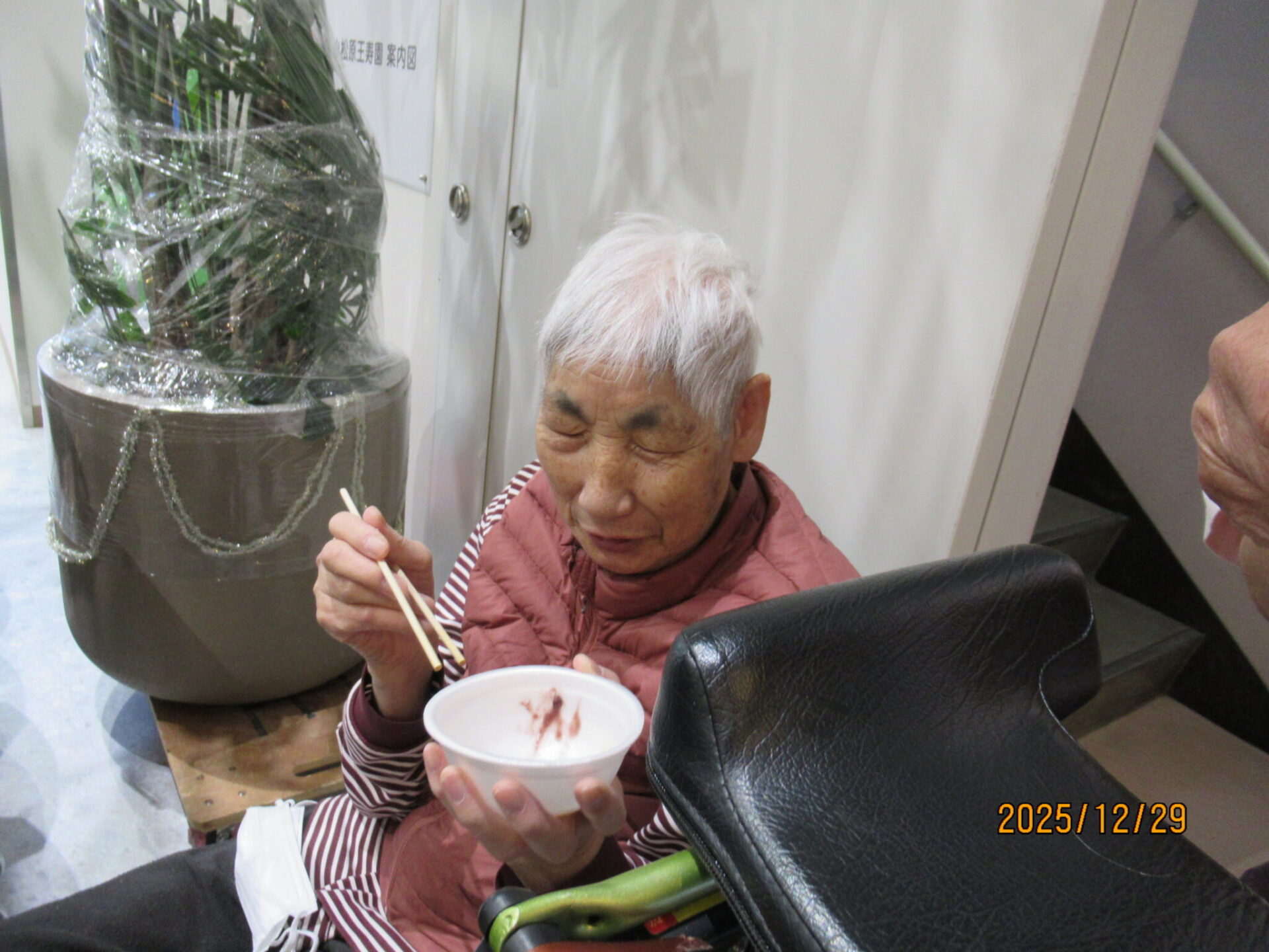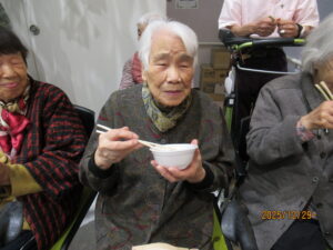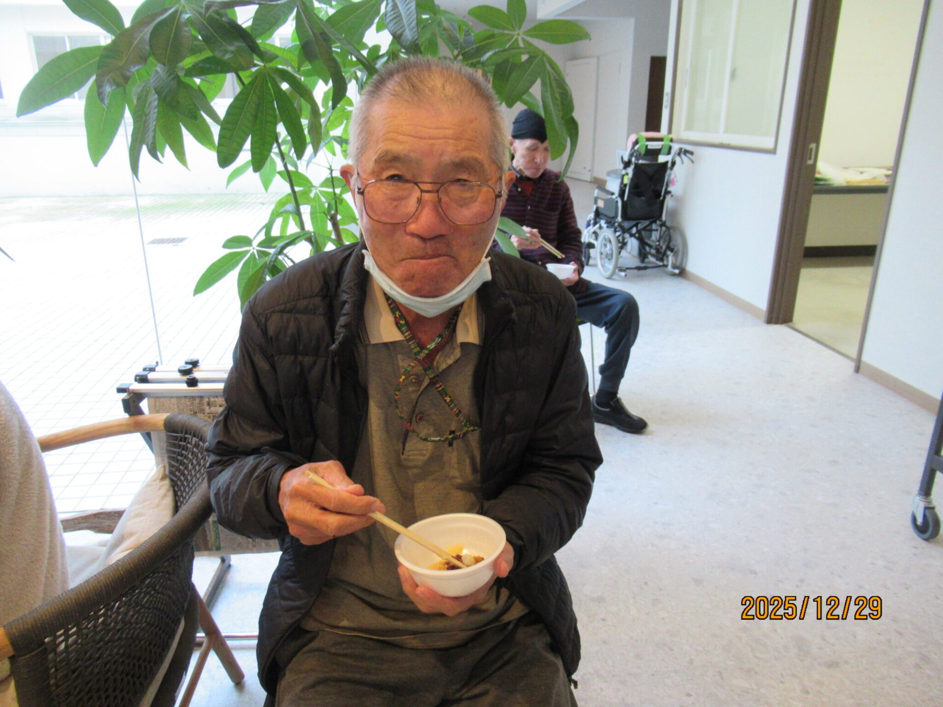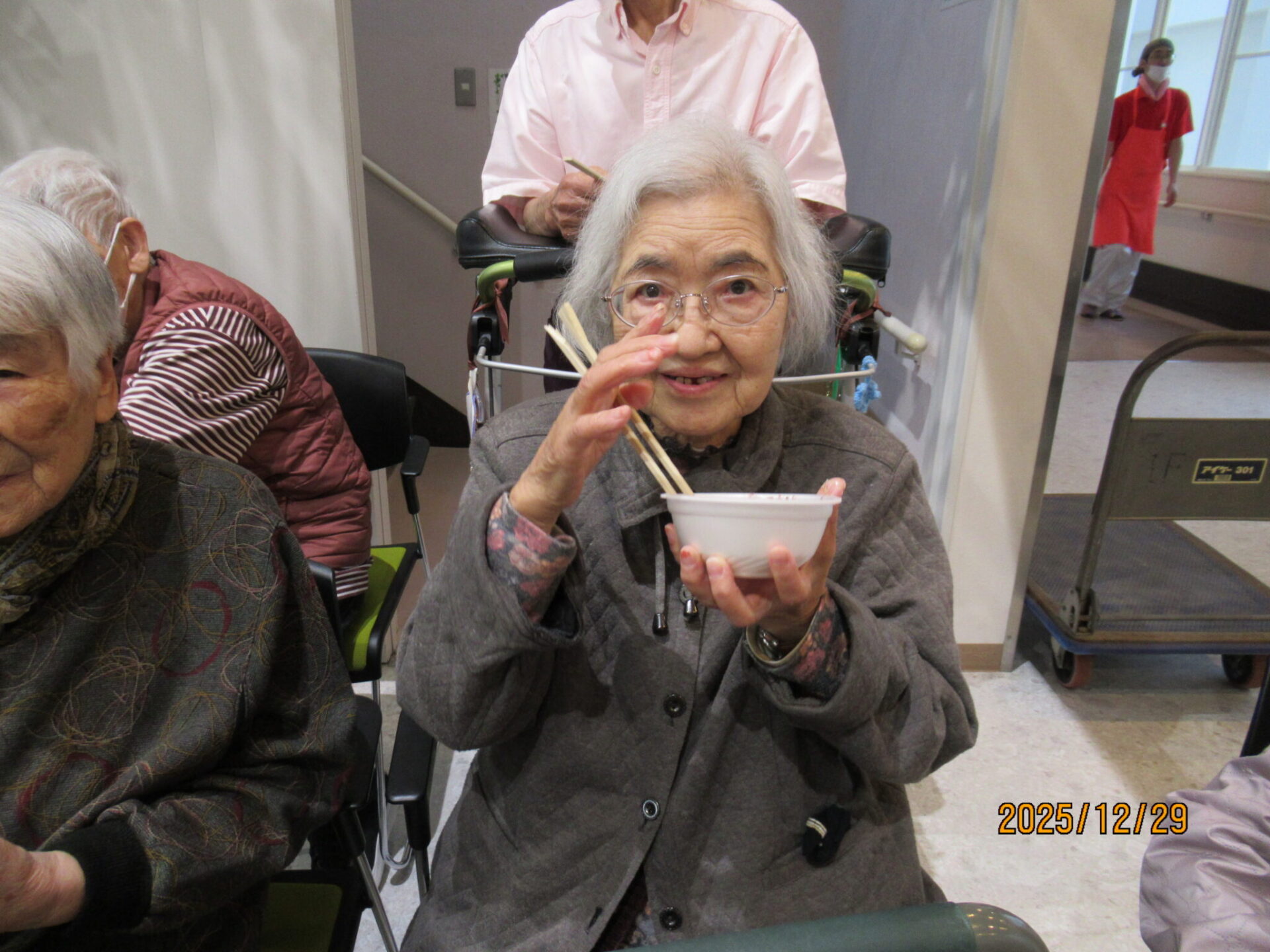 今年も餅つき大会が開催されました。福餅の日、ケアハウスの皆さんも餅つきを楽しんでいました。