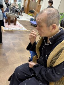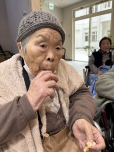 皆さん、つき立てのお餅を慎重に召し上がっていました。つき立てのお餅は柔らかく、ともて美味しいとおっしゃっていました(^_-)-☆
