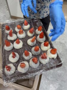 あんころ餅など美味しそうに出来上がりました!!今年は職員さんの実家からいちごをいただき、いちご大福もありました!!!