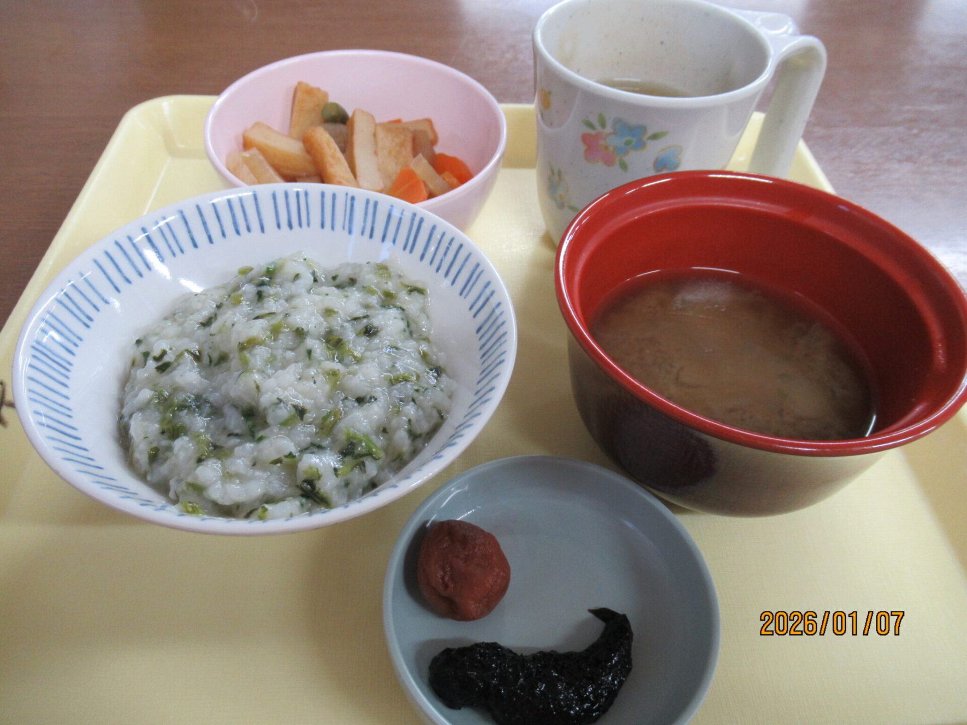 今日の朝食では七草粥が出ました。皆さん美味しいと喜ばれました(*'▽')