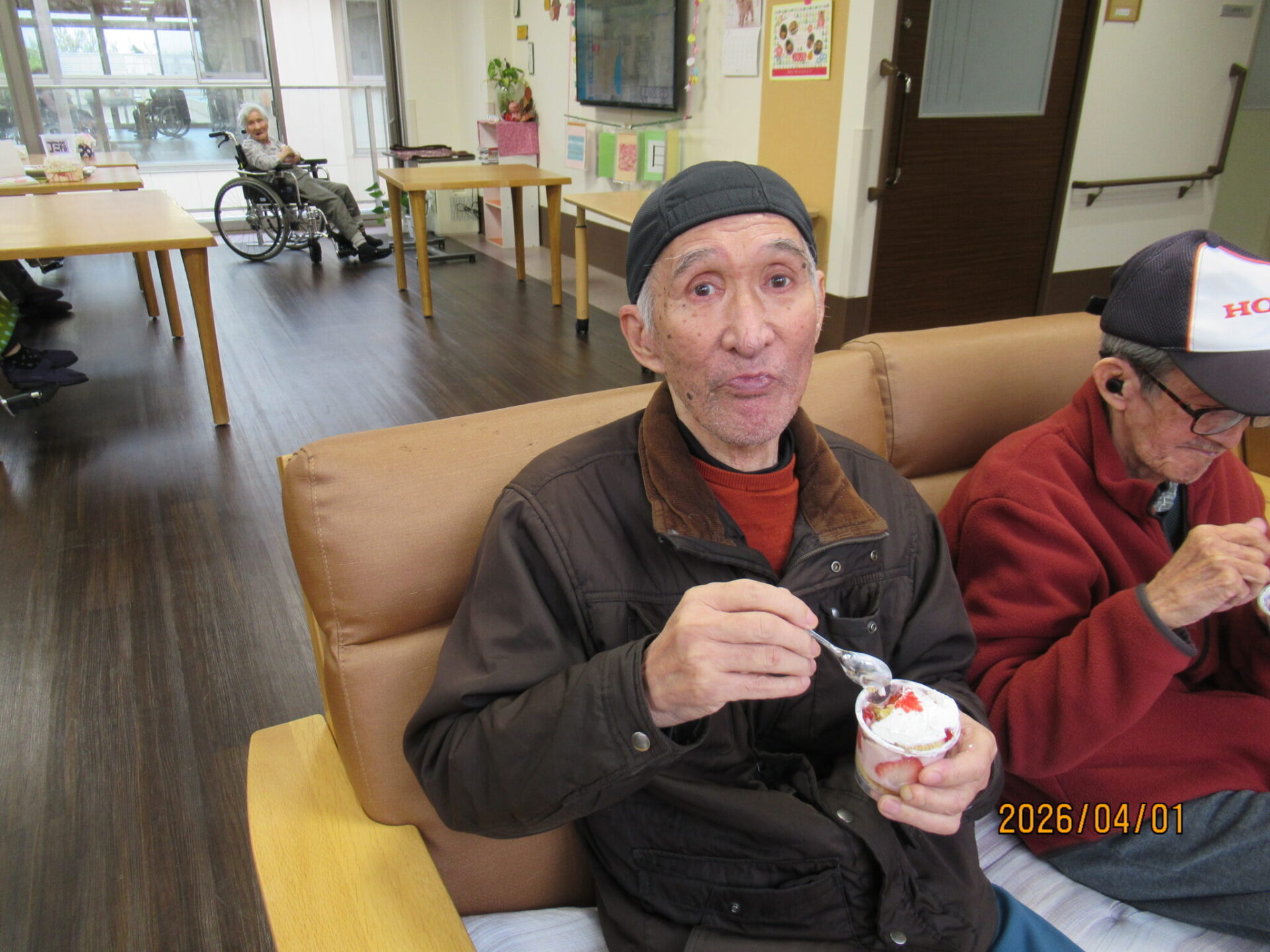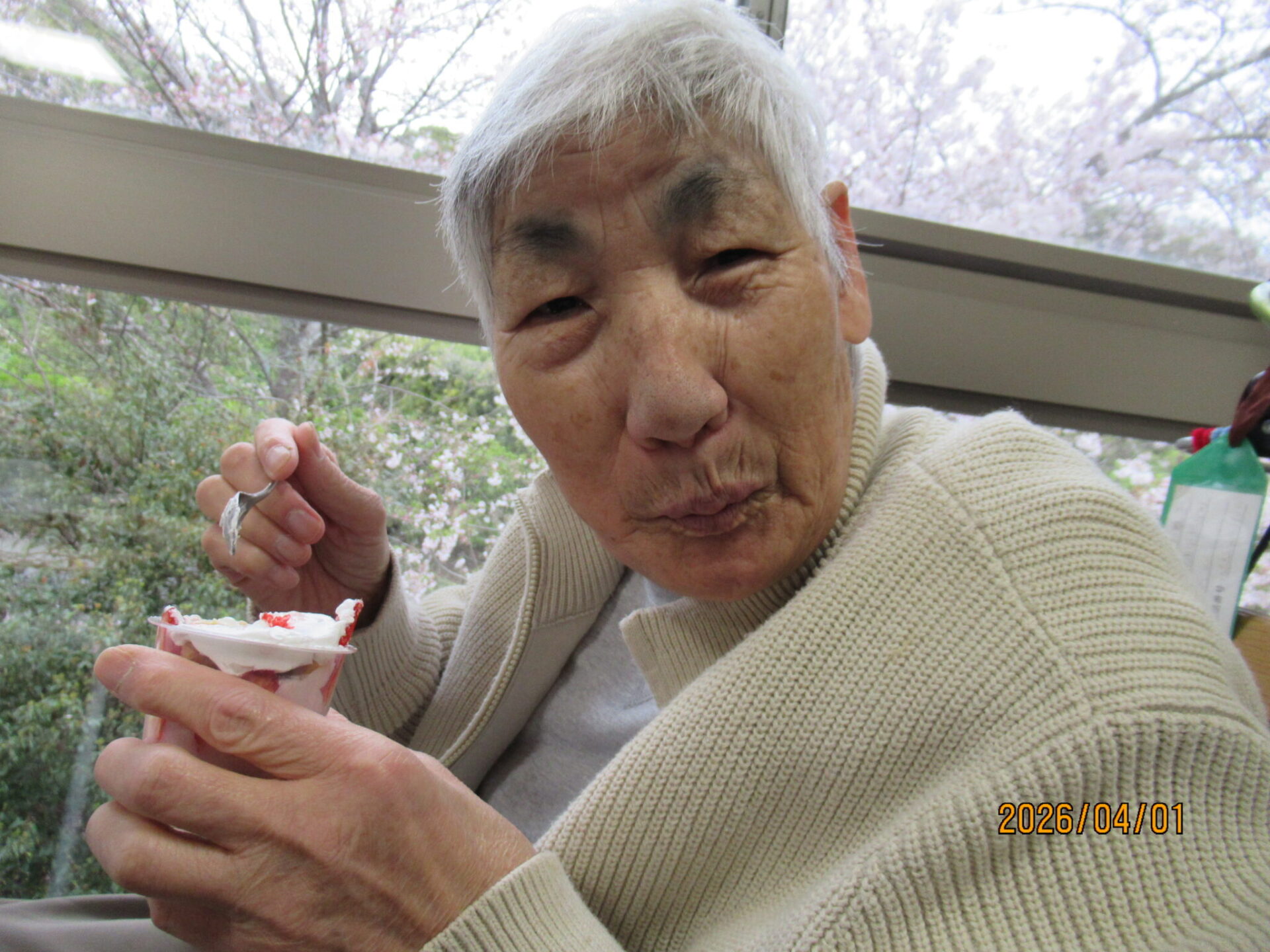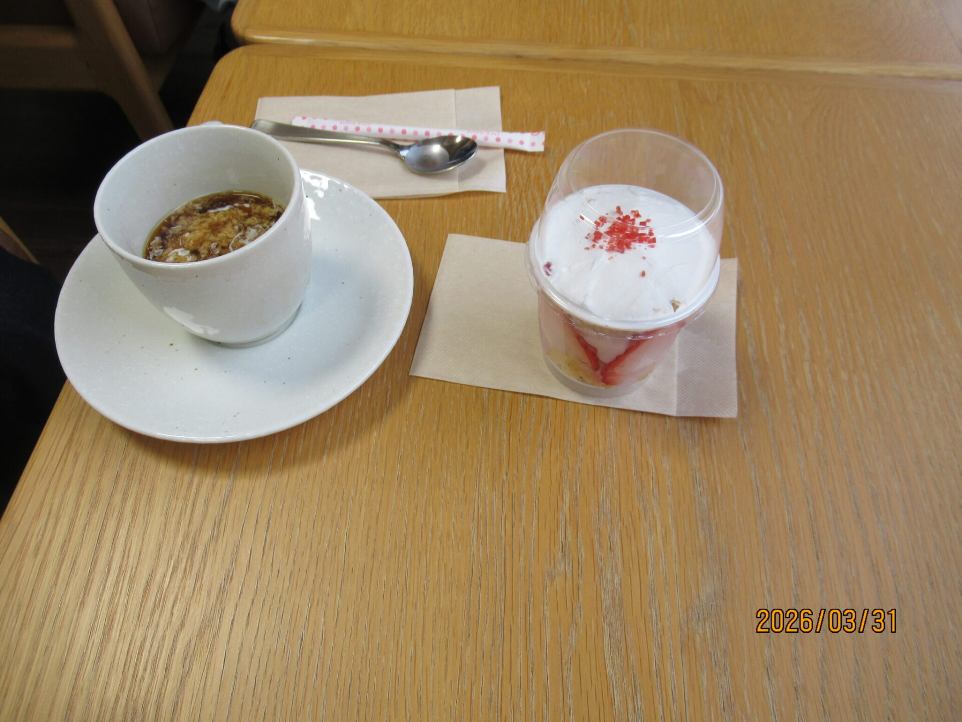 谷川王寿園の栄養士さんがカップケーキを作ってくれてコーヒーと一緒にいただきました🌸
