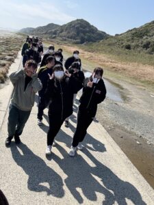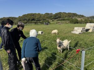 BCP研修、海岸活動についての研修では、恒例となった避難路を歩き、牛とやぎを見に行きました!!