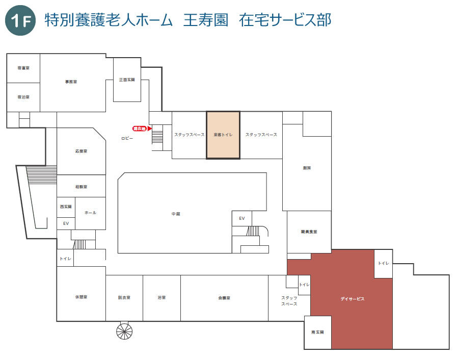 - 1階:特別養護老人ホーム 王寿園 在宅サービス部